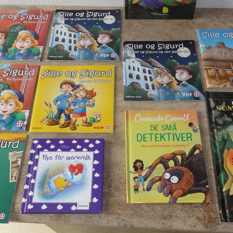To børnebøger: 'Ronja Røverdatter' og 'Peter Plys og hans venner'. Begge bøger er illustrerede og udgivet af Gyldendal. 'Ronja Røverdatter' har et omslag med illustration af to børn ved en ild, mens 'Peter Plys og hans venner' viser en dreng og en tiger på forsiden.sælges samlet