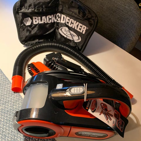 Black & Decker støvsuger med opsamlingspose i sort materiale. Velegnet til rengøring med nem opsamling af støv og snavs. Kompakt design med slange og tilslutningskabel.