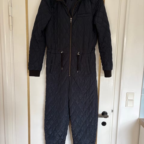 Soyaconcept Quiltet Sort Jumpsuit til kvinder i størrelse M. Jumpsuiten har en quiltet struktur, sort farve og elastiske manchetter ved ærmerne samt elastisk talje. Den har lynlås foran og lommer med knaplukning. Materialet er designet til at give varme og komfort.