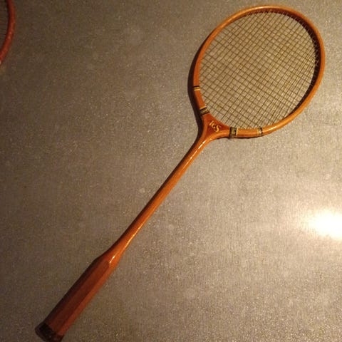Har også en enkelt retro træ badminton ketcher til salg: