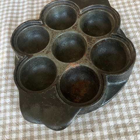 Antik æbleskivepande kan bruges til pynt , Smedejern