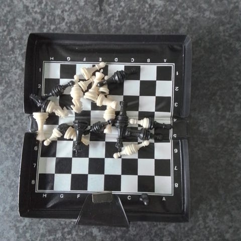 Mini skakspil fedtsten 15 x15cm med lidt brugsspor