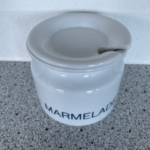 .......... Lækker Marmeladekrukke med låg og ske, designet af Ole Palsby