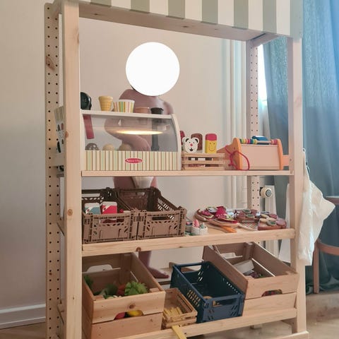 Rigtig fin markedsbod fra Coop. Gurli gris kasseapparat og IKEA køkken.
