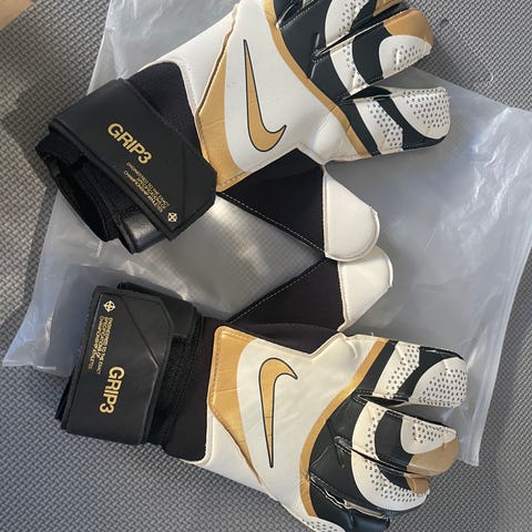 Nike Mercurial Touch Victory målmandshandsker i blå, hvid og gul farve. Handskerne har elastiske håndledslukning og er designet til at give god pasform og godt greb. Størrelse 11: Eliteudgave.