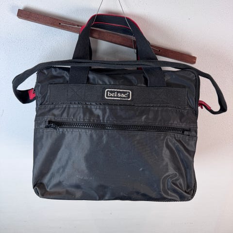 Tasken er vintage og har lidt patina og brugsspor – især på bund og kanter – men fremstår stadig pæn, ren og fuldt funktionel med fungerende lynlåse.