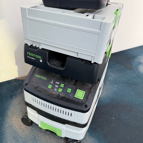 Festool CTM 26 E støvsuger. Støvklasse H. Brugt meget lidt på træværksted så ikke brugt til asbest eller skimmelstøv. Har en malerplet hist og her men fremstår som ny.