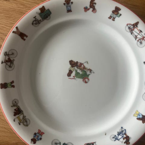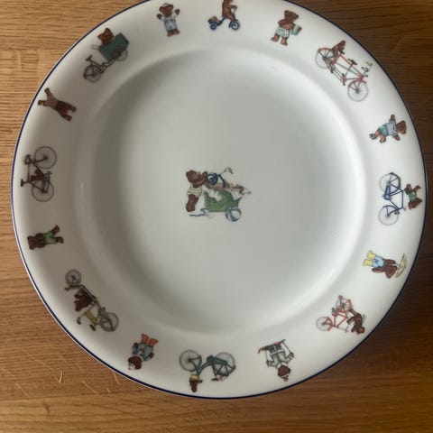 Royal Copenhagen Julius / blå / børneservice bestående af en tallerken, en dyb tallerken og en kop. Porcelæn. Sættet leveres i en original kuffert. Ingen skår, ubrugt.
