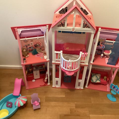 Barbiehus med 2 stole og 8 barbier ( en Ken )