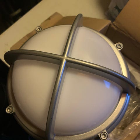Skotlampe i sort. Har aldrig været monteret. Lidt ridser i glasset, ellers er alt super.