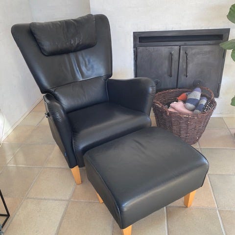 Tom Stepp lænestole med skamler, model Primetime. Eg samt læder