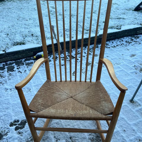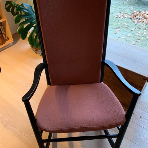 Hyndesæt i semianilin læder til Wegner gyngestol og fodskammel. Købt for 1 års tid siden og brugt meget lidt. Nypris 6.000 kr.