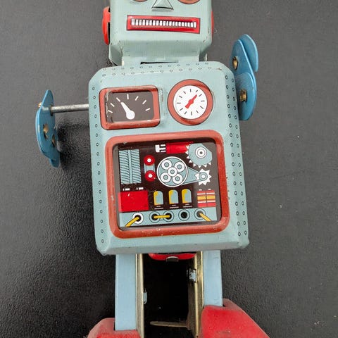 To små vintage robotbiler, begge produceret i Macau, ca. 1988–1992.