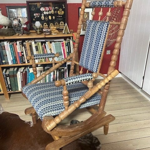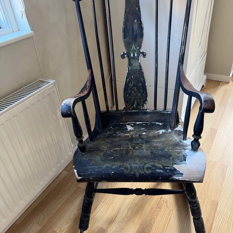Sælger en charmerende antik gyngestol i meget velbevaret stand (senest sat i stand med maling, nyt sæde og betræk for 1 år siden).