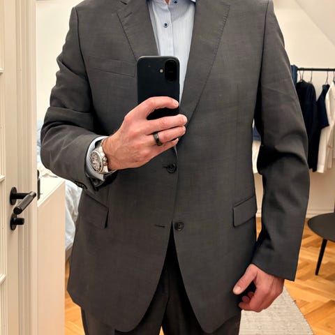 Sælger denne super flotte René Lezard habit med 2 knapper på jakken. 100% uld.