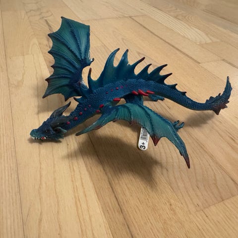 Schleich drage legetøj figur med detaljeret tekstur i orange og sort farve. Figuren har udstrakte vinger og er fremstillet i holdbart materiale. Velegnet til børn og samlere.