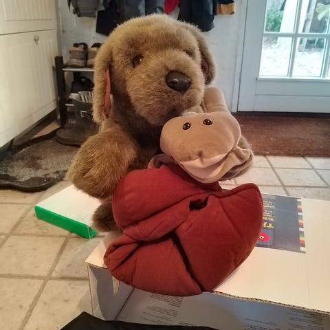 Den søde gravhund fra Prik lavet af forskellige materialer. Den giver forskellige lyde, når barnet rører ved det.
