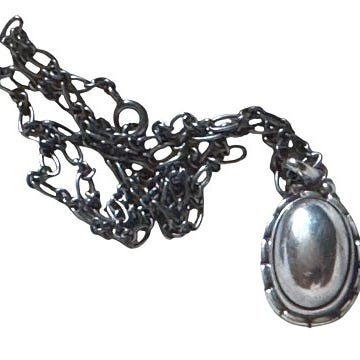 Vedhænget måler 2,5 x 1,5 cm. og kæden måler 43,0 cm.