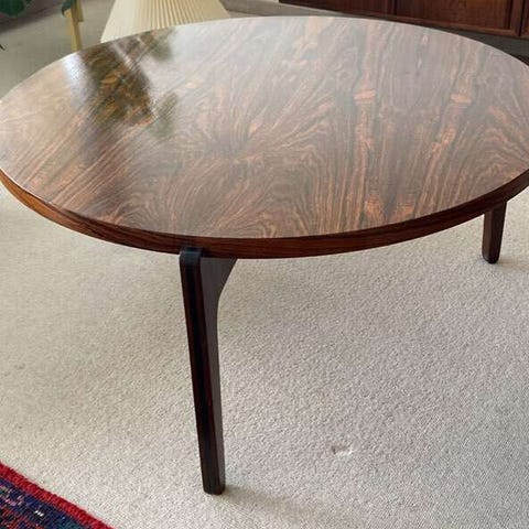 Et super fint rundt sofabord som er 54 cm i diameter i bejset egetræ