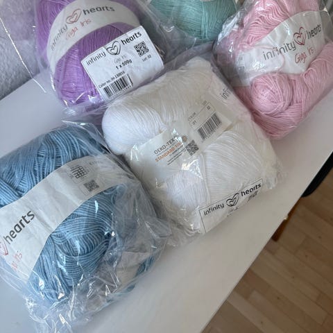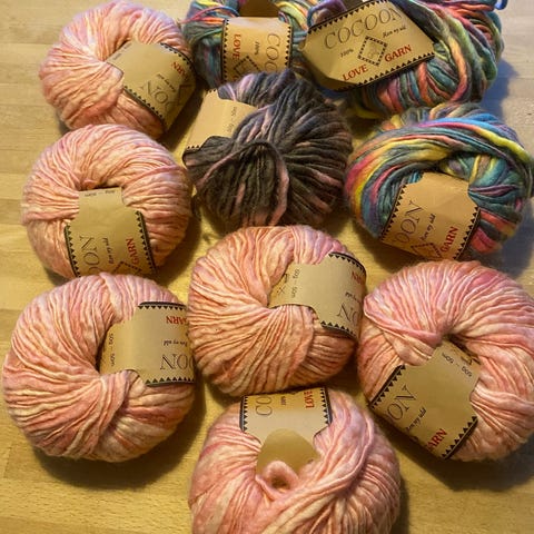 Blødt mega chunky garn. 1 rulle beige ca 230gr og lilla ca 250 gr