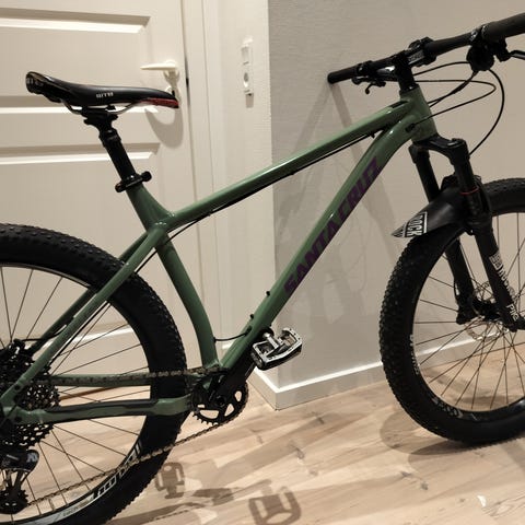 Forgaffel: Opgraderet til en RockShox Revelation (standard er en Suntour). Det giver en langt bedre affjedring, mere kontrol og kan justeres præcis til din vægt. Hjulsæt: 29" hjul med en seriøs dækkombination. Schwalbe Magic Mary foran for maksimalt greb i svingene og Maxxis bagpå for hurtig rullemodstand skal nok have nye slanger, Hjul: 29 tommer (AlexRims). Ramme: Aluminium (Model M105), str. Large (passer ca. 183-192 cm). har nogle små problemer med derailer der går på det største tandhjul på kassetten , trænger til et service ellers super fin mtb
