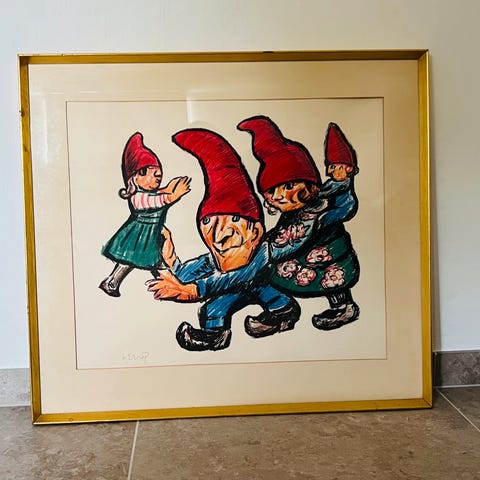 Litografi, Heerup, motiv: Julemotiv, b: 41,5 h: 33, Fint Heerup litografi med julemotiv, kr. 370. Endvidere sælges der en tegning af Mogens Bjørn Andersen, sig. Livsglæde”93 kr. 195.