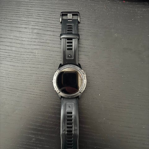 Garmin Fenix 6S smartwatch med sort silikonerem. Urskive er 51mm, uret har en rund urskive og inkluderer en opladerkabel. Designet til unisex brug med funktioner til sport og daglig brug.