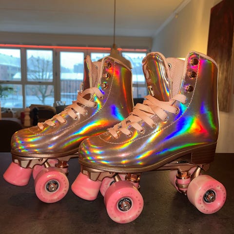 SFR Rulleskøjter "side by side" i størrelse 38 i grå og hvide farver. Sidder rigtig godt på foden, god ankelstøtte.