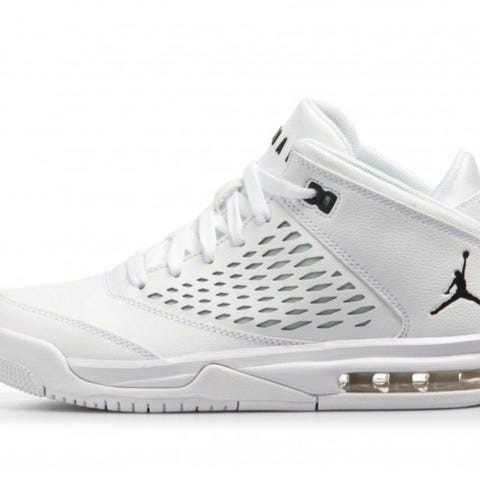 Air Jordan Sneakers i størrelse 36 med grå og hvide farver. Designet med sort snørebånd og karakteristisk Air Jordan logo. Skoene har en gummisål med slidmønster og er velegnede til daglig brug.