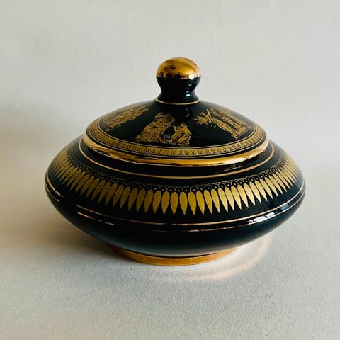 Porcelæn i flot mønster guld, sort, grå, MUSEUM D'HISTOIRE NATURELLE."