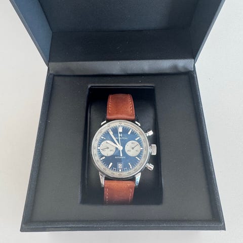 Et markant og sporty special edition-ur fra Hamilton, skabt i forbindelse med det spanske America’s Cup-team, Desafío Español. Modellen har en sort skive med tydelige arabertal, 24-timers markeringer og en sekundær subdial, der giver et funktionelt og maritimt look. Den solide stålkasse med store kronemøtrikker og gummirem understreger urets nautiske DNA. Drevet af et pålideligt automatisk værk er dette en unik Hamilton-model, perfekt til samlere og entusiaster, der ønsker et ur med særpræg og historie.