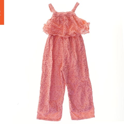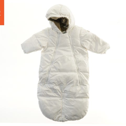 En heldragt med lange ærmer og ben, i en ensfarvet beige nuance. Dragten har en knaplukning foran med flere knapper og to lommer på forsiden. Materialet har et let ribbet mønster.