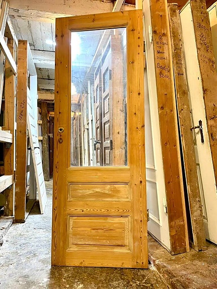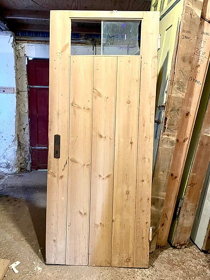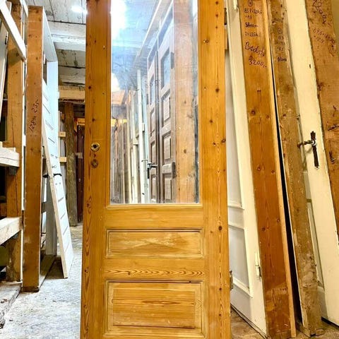 Udvendig enkeltdør m. smukt, gammelt glas, B:75, H:212