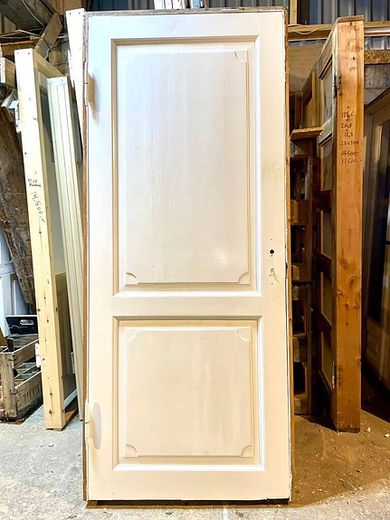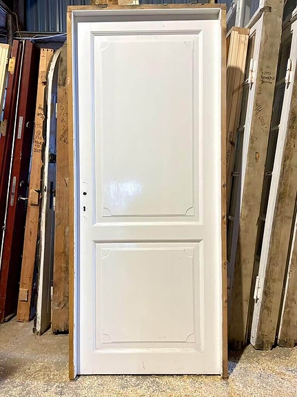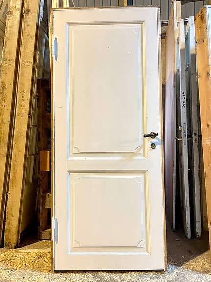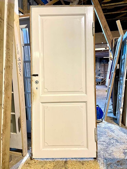 Døren er uden karm og låsekasse skal formentlig skiftes.