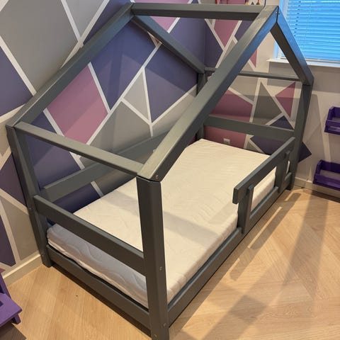 Madrassen medfølger gratis (der er røget et lille stykke af skummen, det bemærker man ikke)