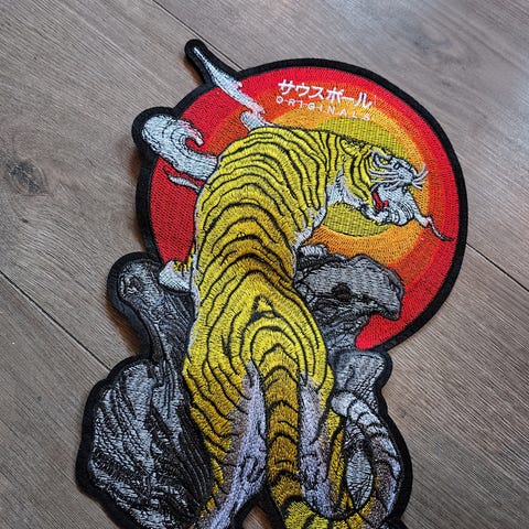 Strygemærke med nuttet hund.