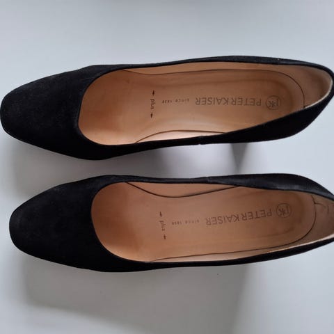 Elegante sorte sko fra Peter Kaiser. Disse sko har en unik hæl med et mønster. Perfekt til både hverdag og fest. Brugte 2-3 gange, minimal alm brugspor på sål, ellers fejler intet. Hæl: 6 cm. Indv længde 21,2 cm