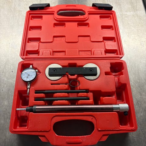 VidaXL bæretøjsværktøj sæt bestående af 7 dele i en rød plast opbevaringskasse. Sættet inkluderer forskellige metalværktøjer til montering og demontering af bæretøjskomponenter. Passer til mekanisk arbejde og reparationer.