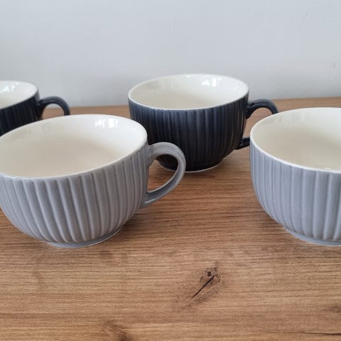 6 par smukke tekopper, i meget tyndt porcelæn, med flot dekoration og “vandmærke” i bunden