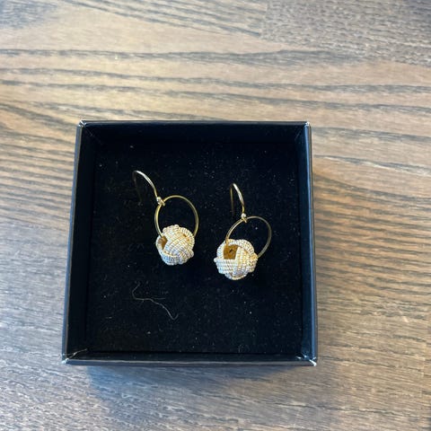 Ørering sølv med perler, gul og brun med gulddetaljer 180 dk