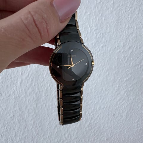 RADO ur med 3,5 cm urskive. På urskive. Er der 12 små fine sten. Urlænke i rustfrit stål, vandtæt.