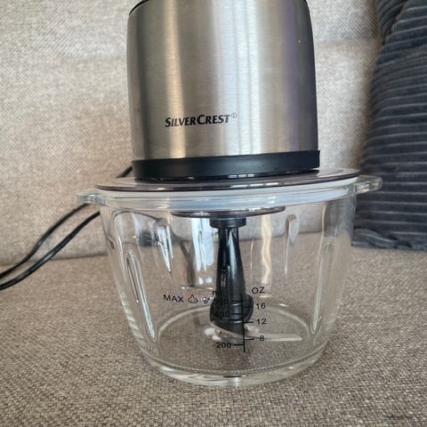 Velfungerende og velholdt SilverCrest hakkemaskine. Med turbo funktion. Hakker lynhurtigt og nemt nødder, frø, kan lave pesto osv
