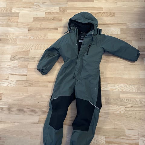 Reima børnedragt i størrelse 110, farve blå, unisex. Dragten er designet til børn og egnet til udendørs brug. Materialet og konstruktionen sikrer bevægelsesfrihed og beskyttelse mod vejrforhold. Der er en mindre skade synlig på dragten.
