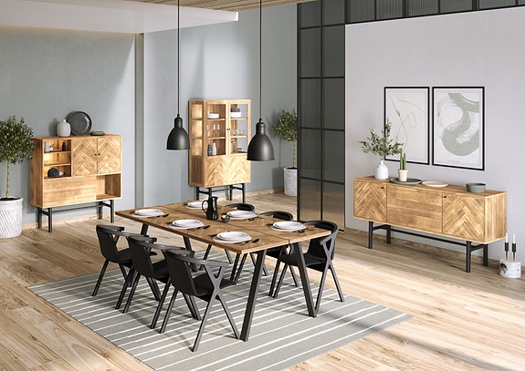 Elegant plankebord med sildebensmønster. Bestående af 2 planker, som gør den helt perfekt til, at skabe et smukt sildebensmønster. Fås i naturolieret eller smoked olieret med A-stel eller U-stel. Det er muligt, at bestille tillægsplader til spisebordet.