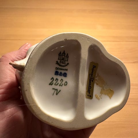 Det er en porcelænsfigur hvor der står Saxe og Foreign i bunden