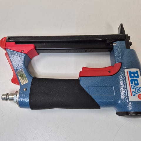 Paslode Pneumatisk hæftepistol med sort og orange design. Værktøjet er egnet til luftdrevet hæftning og har et ergonomisk greb for bedre håndtering. Velegnet til brug i forskellige hæfteopgaver inden for byggeri og møbelproduktion.
