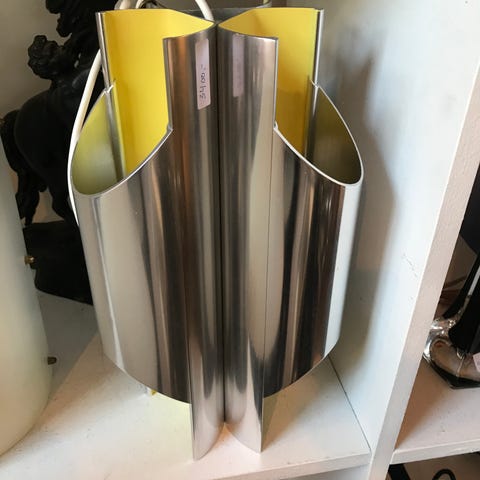 Super flot lampe og i god stand med enkelte brugsspor. 3 porcelænsfatninger E27, de 3 skærme kan slides op og ned uafhængigt af hinanden, og dermed kan skabes forskellige udtryk lysmæssigt. H. 36 cm, D. 22 cm. Kan afhentes i 2720 Vanløse eller 4500 Nykøbing Sj. eller sendes.