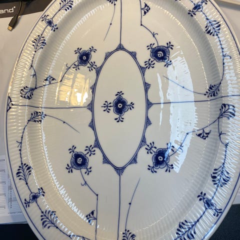 Royal Copenhagen Musselmalet Oval Fad Porcelæn Blå og Hvid