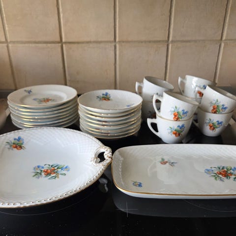 Delene er 1. sortering, og i meget fin stand, ingen skår og ingen revner. Alle dele har fine og intakte guldkanter.