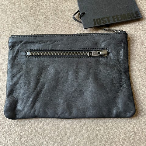 Juicy Couture - blød skin clutch i pink. Tasken har en rektangulær form med lynlås og dekorative metalnitter på forsiden. Indvendigt er tasken foret og indeholder en mindre lynlåslomme til opbevaring af små genstande. Den er meget velholdt.